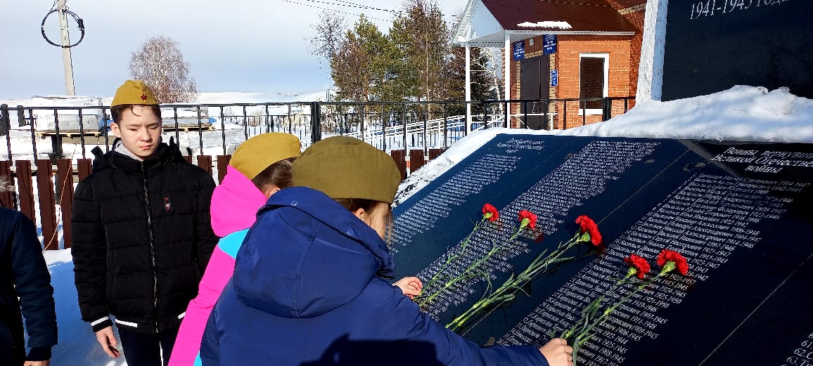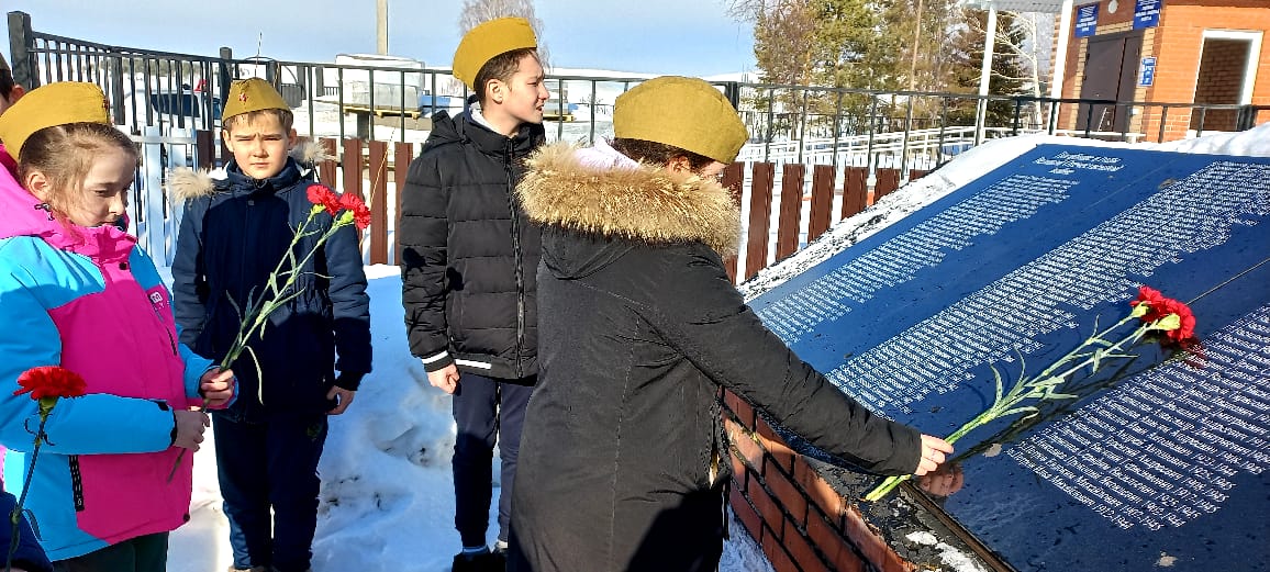 В день празднования Дня защитника Отечества, обучающиеся традиционно пришли к памятнику и возложили цветы. Собравшиеся отдали дань уважения всем солдатам, не вернувшимся с войны, всем, кто погиб в боях и не дожил до сегодняшнего дня.