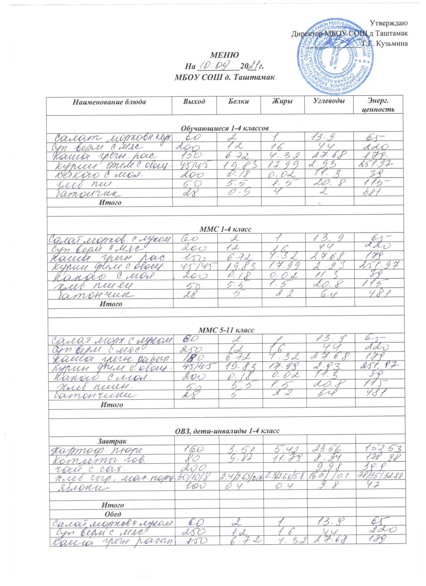 (Меню на 10.09)