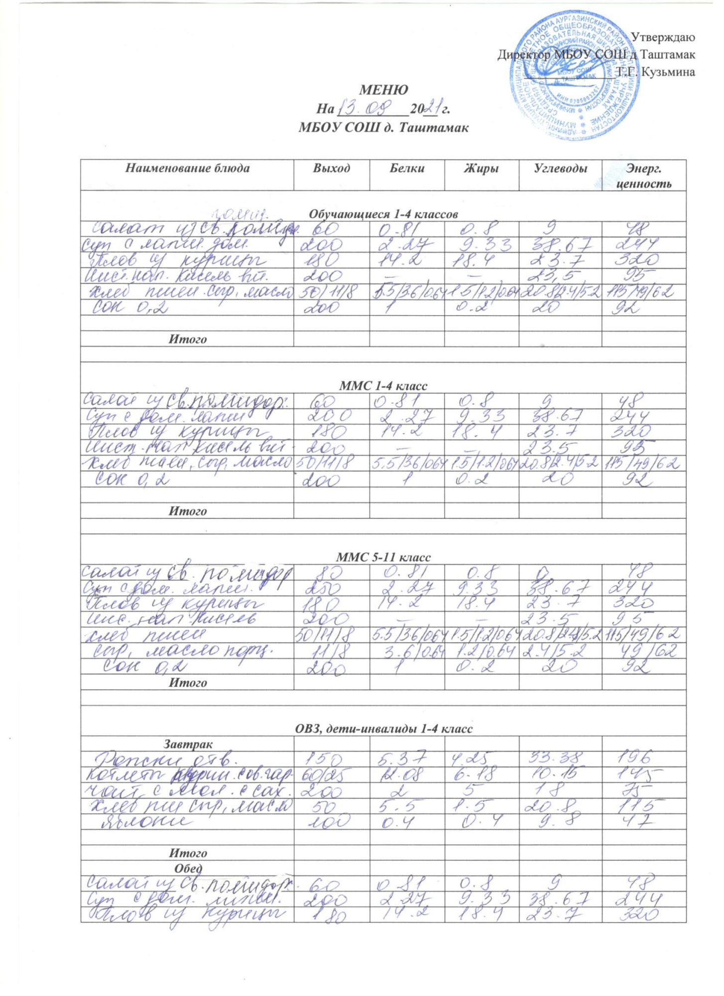 (Меню на 13.09)