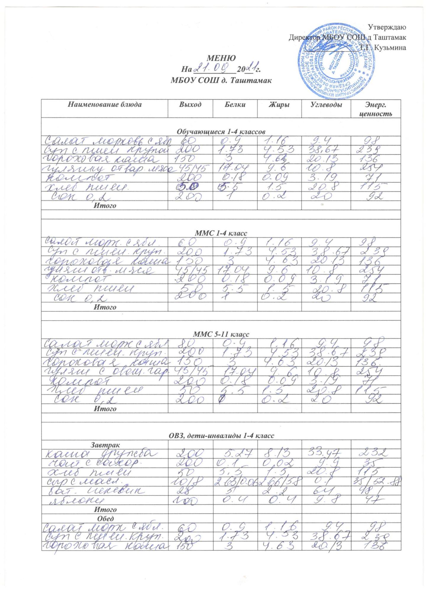 (Меню на 21.09)