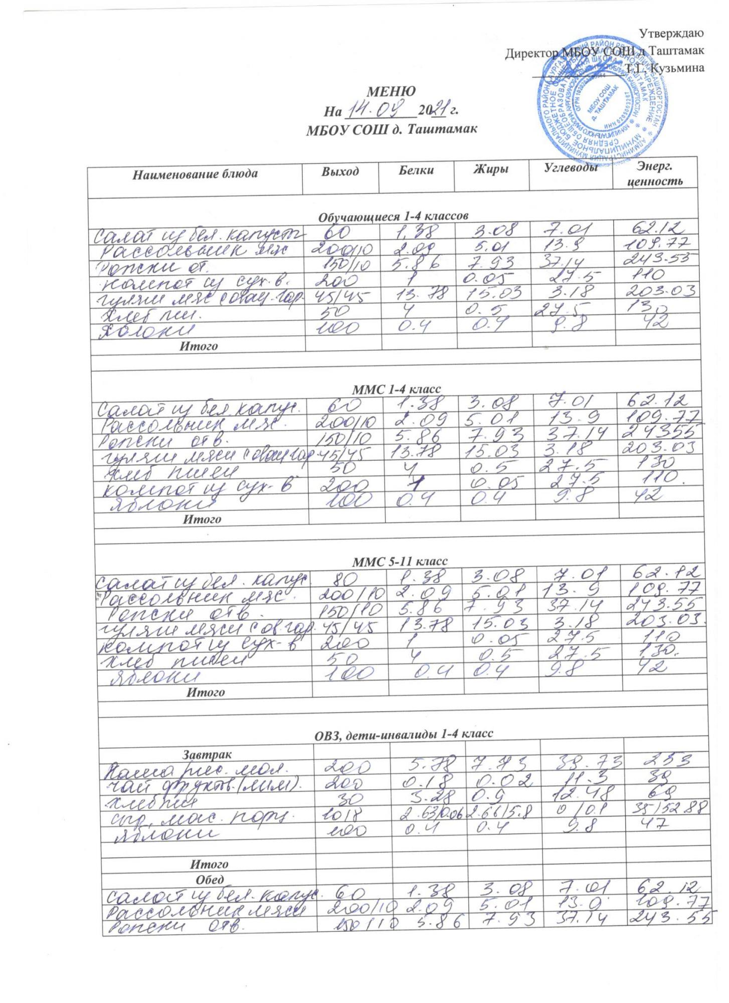 (Меню на 14.09)
