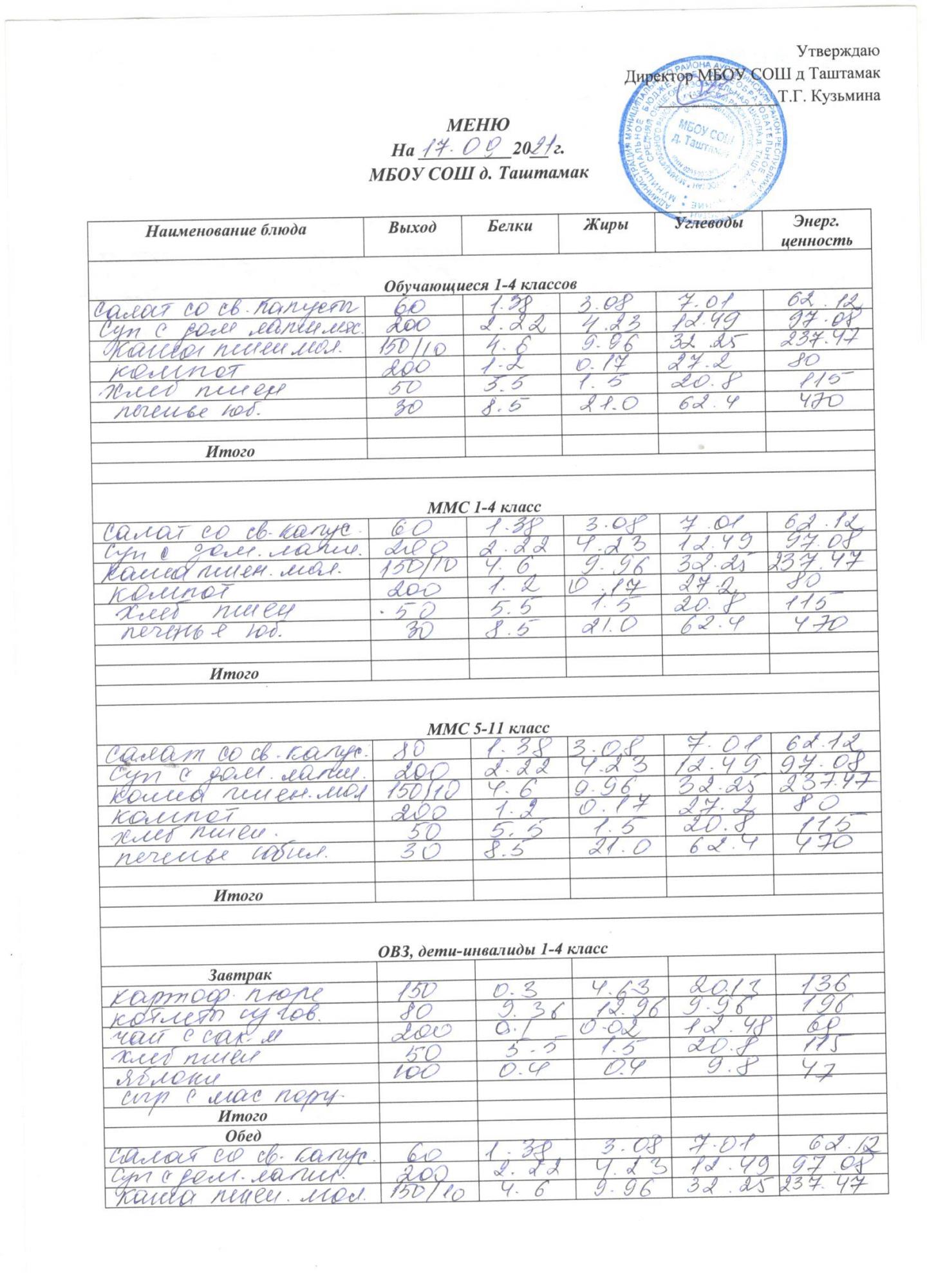 (Меню на 17.09)