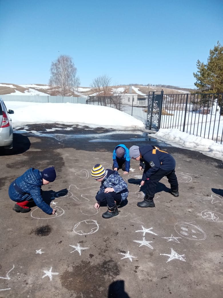 Обучающиеся 2,3 класса присоединились к Всероссийской акции «По следам космических достижений». Во время прогулки по деревне нужно было найти места, достопримечательности, предметы, связанные с космосом. Совершив экскурсию деревне оказалось, что космос нас окружает везде. И обучающиеся оставили следы самостоятельно нарисовав на асфальте рисунки.